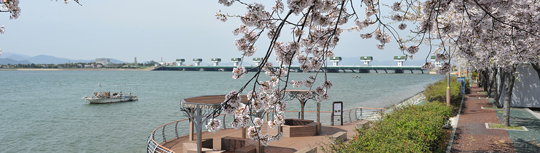 It is a beautiful trailer built around the embankment slope along the riverbank. The road is installed with urethane, suitable for walking or riding bicycles and a magnificent lane of cherry trees beautifully aligned as well. At sunset, enjoy the finest scenery where the river meets the sea.