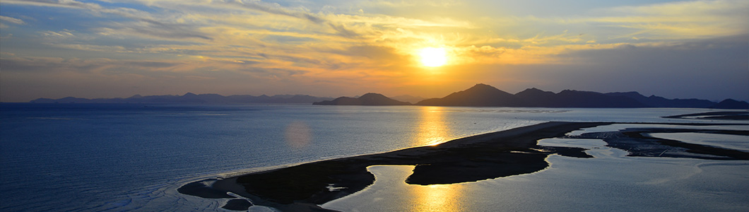 峨嵋山展望台から多大浦海水浴場までの生態探訪路では、美しい夕日が見られる。