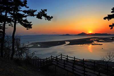 洛東江の河口にある峨嵋山展望台は、峨嵋山の南側の端にある。砂島、渡り鳥、日の入りなど自然景観が見られる場所。洛東江の河口の姿と三角洲の形成過程、地質に関する資料がわかりやすく展示されている。
